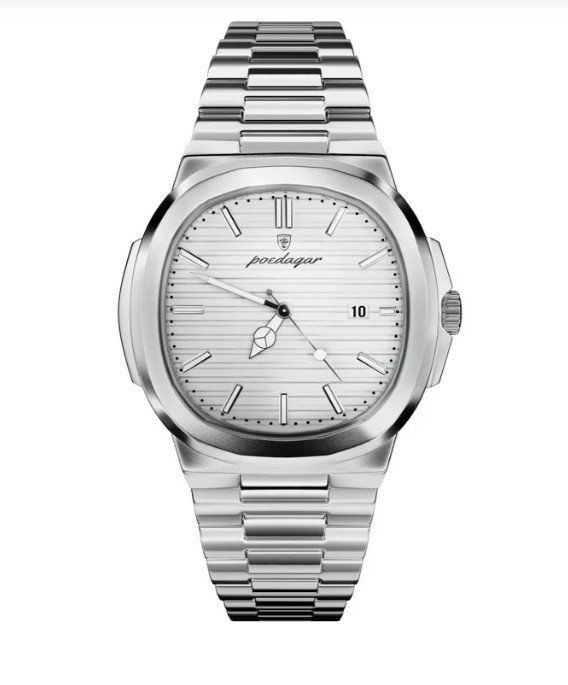 Poedager 613 (Silver White) is a clean and elegant men’s wristwatch designed for those who prefer a minimalist yet premium look. Featuring a bright white dial paired with a polished silver stainless steel strap, this watch offers a timeless aesthetic that suits both formal and everyday wear.